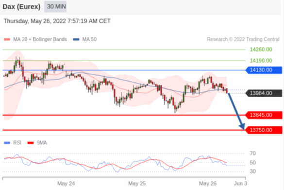 交易策略: 在 14130.00 之下,看跌,目标价位为 13845.00 ,然后为 13750.00 。