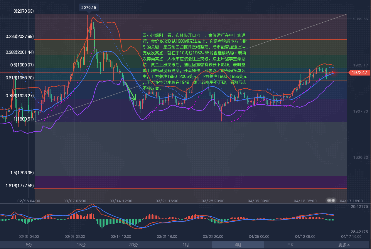 对外汇、黄金、白银、原油、CFD均有深入研究,对经济数据、K线理论、均线理论、指标理论、形态理论、波浪理论均有独特的研究造诣,不仅具备深厚的技术分析功底,而且擅用逆向思维来把握市场群体心理反应,能够准确的把握市场动向,在变幻莫测、扑朔迷离的交易市场中游刃有余。微信:BOLL500