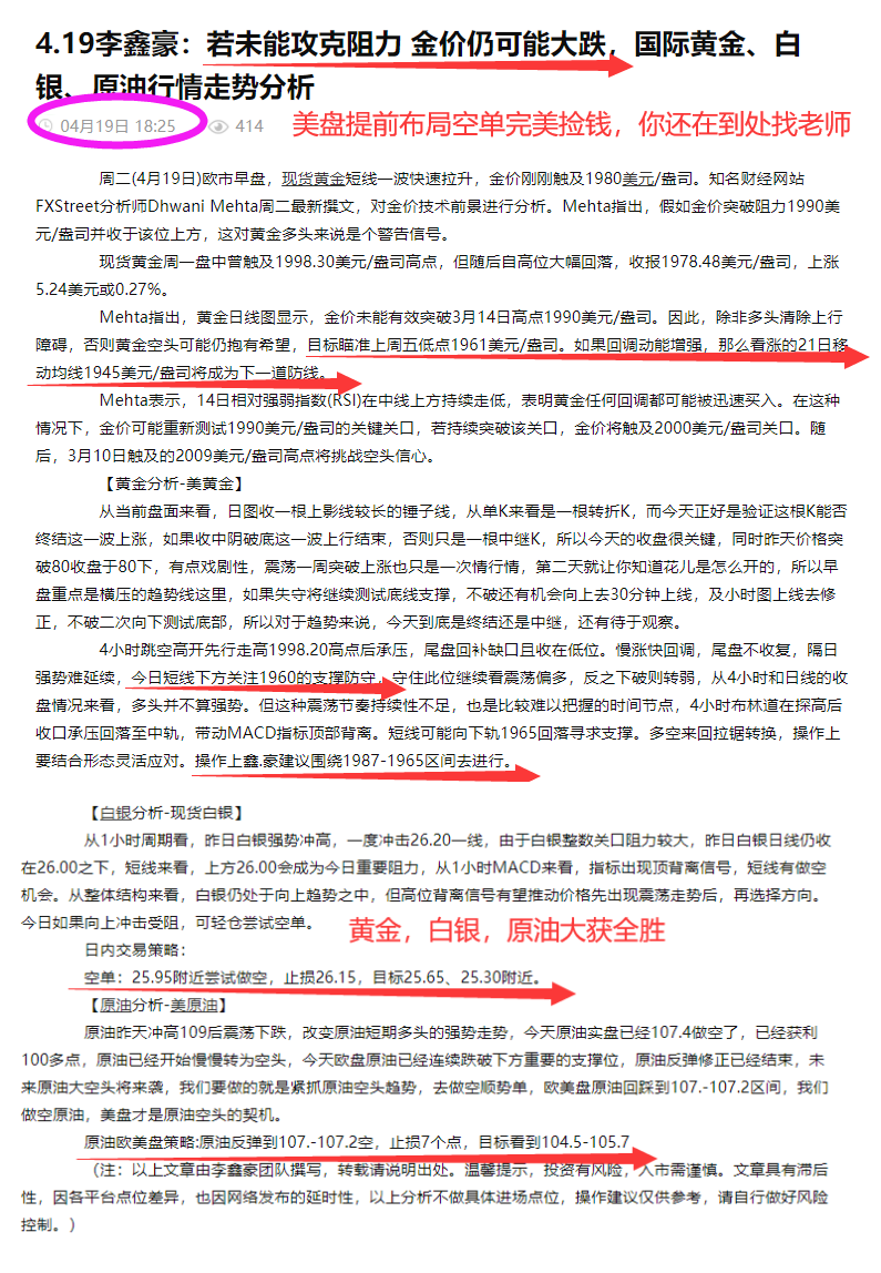 你在选择老师的同时,我也在选择客户。每天坐在电脑前就不管外面是白天还是黑夜,到有依据的行情就一个个提醒客户做单,客户做完就可以忙自己的事情,其他的全部由我来跟单,到点提醒出常花费这么多的精力,却不能赚钱,让客户失望也让自己的精力白费?我还不如轻轻松松每天睡个好觉。在外行人看来分析师只是一个