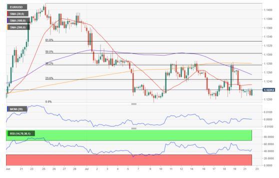 周二(7月23日)国外财经网站FXtrt首席分析师Valriadarik撰文就欧元、英镑、日元以及澳元的最新走势进行了分析。 欧元/美元 欧元/美元周一位于1.1210窄幅波动,小幅收跌。风险厌恶情绪上升提升避险资产价格,美元受到支持。欧央行决议公布前欧元交易员趋于谨慎,市场预期该央行货币政策立场将更加鸽派,打压