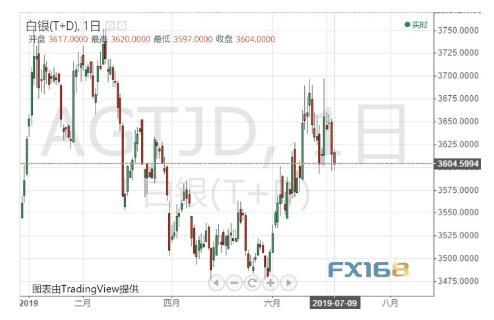 周二(7月9日)亚市盘中,上海黄金交易所白银T+D目前下跌0.33%至3604元/千克,本交易日开盘时报3617.00元/千克。 (白银T+D日线图) 周一(7月8日)白银T+D下跌33元/千克,跌幅为0.9%,收于3616元/千克,最高触及3654元/千克,最低触及3597元/千克。 上一交易日国际现货白银开于15.01美元/盎司,最低下探14