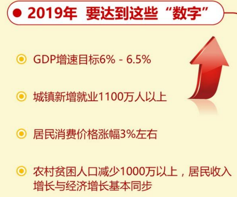备受关注的中国全国人大会议周二开幕。在稳中有变、变中有忧的经济运行基调下,政府工作报告淡化了GD增长目标,从去年的6.5%左右调整至2019年的目标增长6-6.5%,基本符合市场预期。 业内人士指出,相比2018年提出当年国内生产总值增长6.5%左右,2019年明确给出6%-6.5%的区间概念,虽然适度降低了经济增长预期,但这