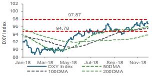 贸易紧张局势缓解和美联储鹰派基调减弱重新提振了风险偏好,G20峰会利好发酵助商品货币澳元、纽元刷新阶段高点。尽管意大利预算问题出现缓和迹象,但欧元区经济增速放缓,外加一系列仍未解决的政治风险,仍可能会迫使欧洲央行推迟加息,使得欧元承压。随着英国脱欧期限临近,接下来这一周将为英国经济的命运提供更多线索