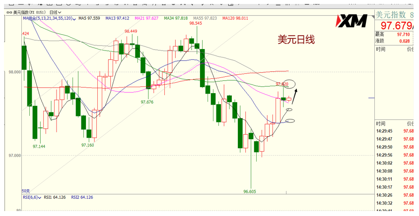 美元指数:美指周一回调在97.55之上受到支持,反弹在97.85之下遇阻,收盘在97.66,意味着美元短线回调后有可能保持反弹的走势。如果美指今天回调在97.55之上受到支持,后市反弹的目标将会指向97.80—97.95。今天美指短线阻力在97.75—97.80,短线重要阻力97.90—97.95。今天美指短线支持在97.55—97.60,短线