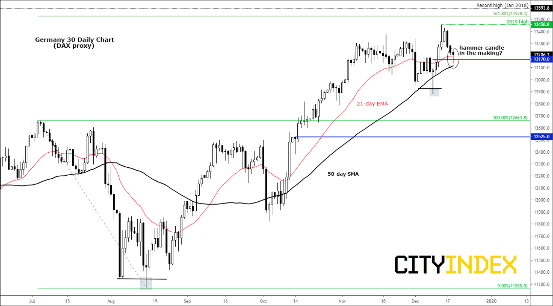 德国DAX指数是今天早些时候表现最差的指数之一,但随着美股创下新高,DAX与全球市场一道反弹。部分归因于欧央行重启Q决定,德国股市最近持续走高。随着中美贸易协定利好消息传出,投资者也希望德国对中国的出口能于2020年反弹。因此,DAX指数有望延续反弹势头,甚至可能上破2018年1月创下的历史高点。 来源:Tr