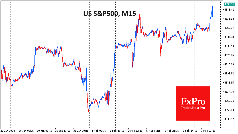 标普500指数期货在美国交易活跃时段开始时触及4990点的历史新高。该指数距离显著的5000点整数关口仅一步之遥,毫无疑问,这一水平将被突破。更有趣的问题是这次涨势能够持续多久。Fxro高级分析师AlxKutikvich指出:有几个要注意的因素。 首先,尽管有关地区银行问题的消息,纳斯达克100和标普500指数仍创下