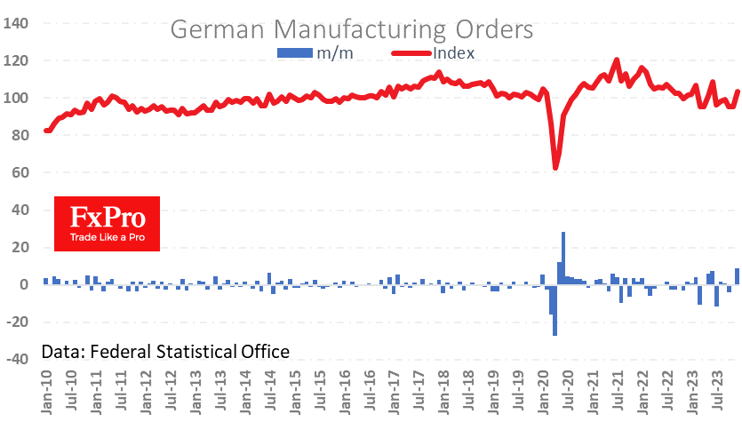12月份工业订单增长了8.9%,而预期是下降0.1%,这对于德国来说是一个罕见的积极信号,但欧元选择忽略了这一点。这是自2020年中期封锁以来最强劲的月度增长。 Fxro高级分析师AlxKutikvich指出:与去年同期相比,经济同比增长了2.7%。在过去两年里,同比的同比增长率是罕见的,因为几次峰值并没有打破总体下降趋势
