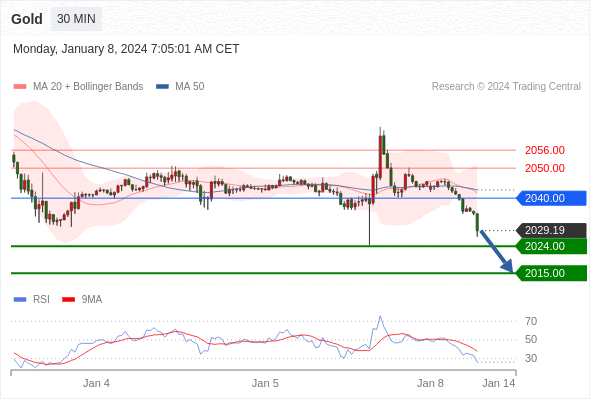 金价(黄金/美元)在2,040美元附近窄幅震荡,投资者在等待美国非农就业(F)数据提供新的线索。周四公布的其他与就业相关的经济指标,如AD就业变化和上周初请失业金人数,均超出预期,为官方就业数据奠定了更高的基矗由于劳动力需求放缓导致个人频繁更换工作的步伐放缓,市场参与者仍预计就业岗位将温和增长,12月非