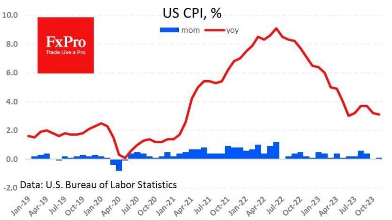 美国消费者价格指数环比上升0.1%(低于预期的0.0%)。年通胀率从3.2%放缓至3.1%。核心物价指数(不包括食品和能源)上升0.3%,保持了4.0%的年增长率。 Fxro高级分析师AlxKutikvich指出:自6月以来,总体通货膨胀率稳定在3%以上,没有明显的下降趋势。与此同时,名义消费者物价指数(CI)上涨了1.4%以上。核心指数稳