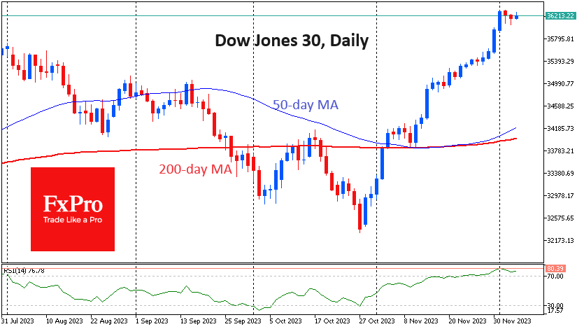 道琼斯指数已进入盘整模式,加入了标准普尔500指数和纳斯达克100指数的行列,这两个指数分别在近两周和三周前进入了盘整模式。这可能是在突破新高之前的盘整,但我们更有可能看到增长的消耗。 Fxro高级分析师AlxKutikvich指出:道琼斯指数目前距离2021年12月的创纪录收盘价仅0.8%,距离历史高点仅2%,在过
