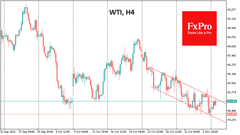 油价正试图找到底部。与此同时,政治评论和市场情绪正朝着同一个方向发展,增加了反弹的可能性。 Fxro高级分析师AlxKutikvich指出:近两周以来,每桶WTI原油的价格一直在狭窄的交易区间内下跌,这是自10月20日开始的一轮相当剧烈的抛售之后的有序回落。 上周,随着西得克萨斯中质油(WTI)接近每桶80美元