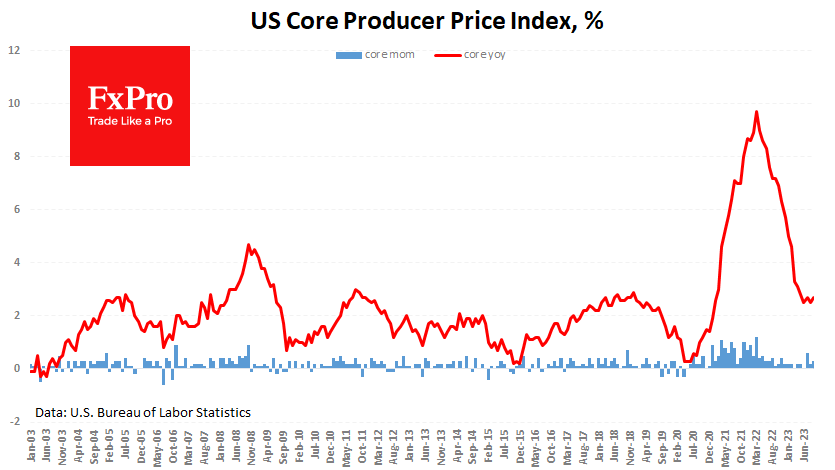 美国生产者价格指数(I)的上涨势头强于预期,新一轮价格加速重新使得投资者的担忧。 整体I环比上涨0.5%,而不是预期的0.3%。去年同期,该指数同比上涨2.2%,而不是预期的1.6%。这种对年增长率的不同估计是由于对前几个月的数据进行了向上修正。简单地说,生产者价格通胀高于预期。 除去波动较大的食品和能源后