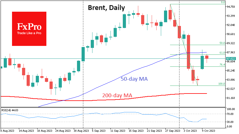 纽约商品交易所(YX)的西得克萨斯中质原油(WTI)期货在短线阻力位86.50美元上方积聚了新的上行动能。投资者认为,由于以色列与哈马斯之间的冲突可能延伸至加沙以外地区,石油市场将进一步收紧。 市场情绪相对谨慎,但投资者仍未激烈抛售,因为他们正在观望事态的发展。这是因为哈马斯已准备好就休战进行讨论,而