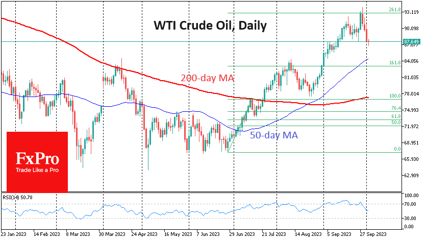 油价在触及13个月高点后连续第四个交易日下跌。西德克萨斯中质原油(WTI)的现货价格接近每桶94美元,这似乎是看涨者为维护自己的优势所做的最后一搏。 Fxro高级分析师AlxKutikvich指出:然而,这似乎是自6月份价格暴跌以来的第三波上涨。自上周四以来,盘中反弹受到大量卖单的抑制。西德克萨斯中质原油周二一度