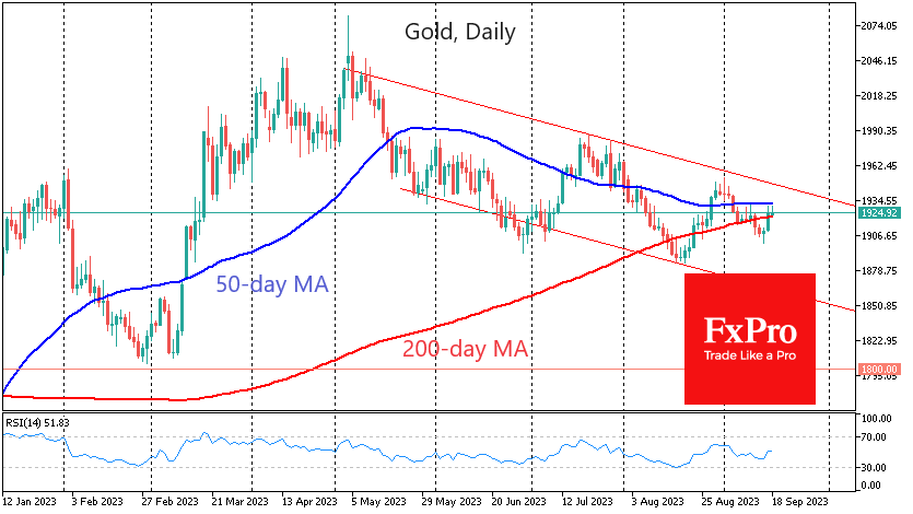 上周五,金价上涨了近1%,此前一天金价曾跌至1900美元以下。第二个月的价格测试了长期和中期趋势,让美联储做出支持多头还是空头的决定性论点。到目前为止,周五的上涨看起来像是空头的陷阱。 Fxro高级分析师AlxKutikvich指出:金价上周最低收于200日移动均线上方。在过去的两个月里,这是多头第二次试图证明低