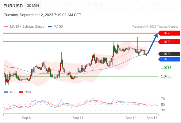 欧元/美元周一成功守住了1.0700的整数关口支撑。在投资者等待将于格林威治时间周三12:30公布的美国8月份消费者物价指数(CI)数据之际,主要货币对普遍难以出现决定性走势。 标准普尔500指数(a500)开盘上涨,市场情绪高涨,投资者将焦点转向美联储(Fd)在剩余一年内不会加息的背景。在中国通胀出现改善之