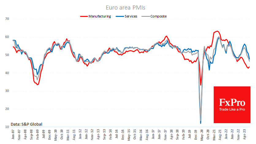 英国的商业活动正在下滑,欧洲和中国也是如此,尽管8月份服务业采购经理指数(I)终值从最初估计的48.7上升至49.5。根据本周二发布的采购经理指数(I),8月份服务业由增长转为收缩,降至49.5。 上周末,制造业采购经理指数(I)降至43.0。除2020年4月和5月以外,该指数仅在2008年10月至2009年2月期间处于较低