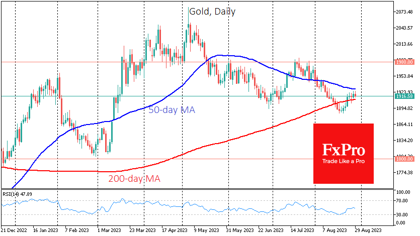 自上周初以来,金价上涨了2%,但金价的上涨势头似乎正在减弱。 Fxro高级分析师AlxKutikvich指出:自20日以来,黄金一直受卖家摆布,从峰值到低谷下跌了5.2%。金价在跌破1885美元后,在短期内开始看起来超卖。 8月份,该价格先后跌破50日移动均线和200日移动均线。最近几天的反弹使价格回到了长期移动平
