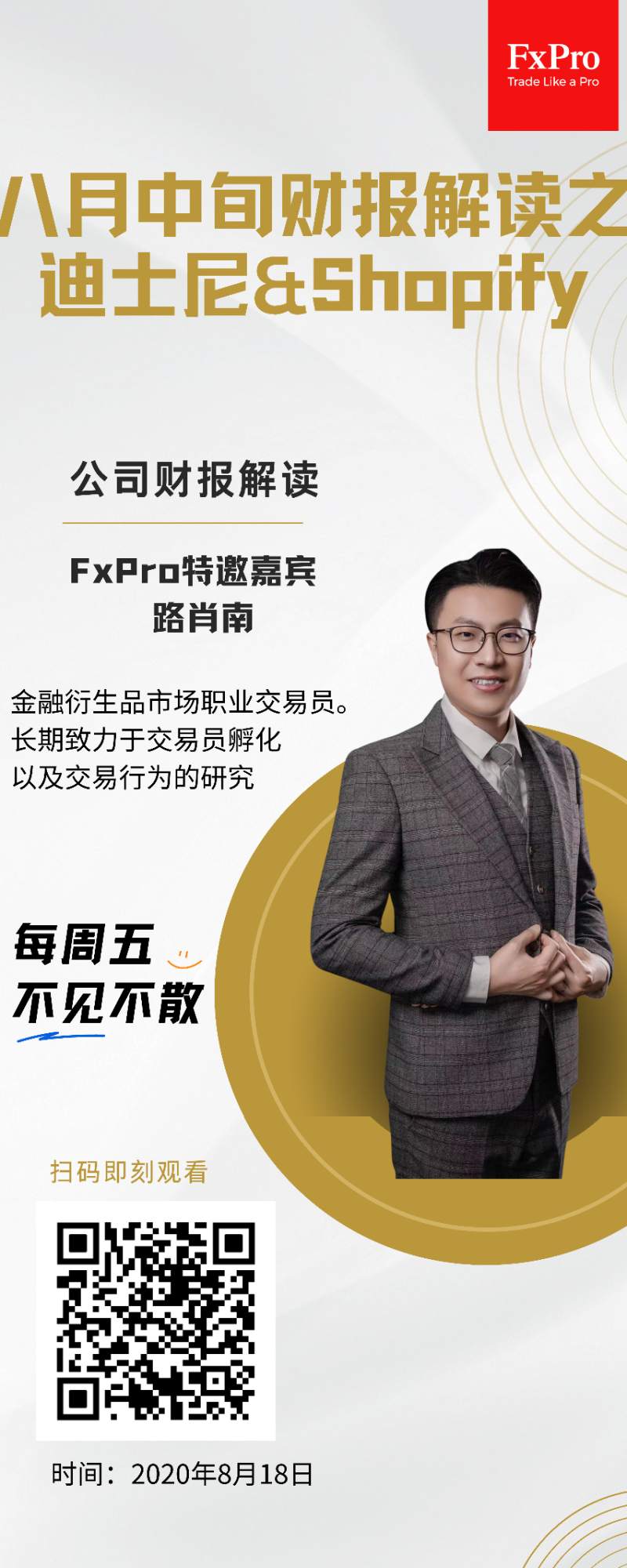 Fxro特邀嘉宾路肖南录播的八月中旬市场观察将分两期播放,本期为第一期,主要解读解读迪士尼、hoify的公司财报,扫码即可观看。