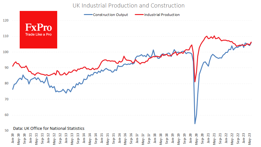上周五公布的一组数据显示,6月份英国经济在一系列指标上的表现优于预期。第二季度GD增长0.2%,去年同期增长0.4%。此前的预期是增长不超过0.2个百分点。 工业生产率得惊人的1.8%的环比增长,其中制造业产出增长2.4%。在经历了数月的低迷表现后,工业生产指数达到了2022年5月以来的最高水平。 建筑业的活动也