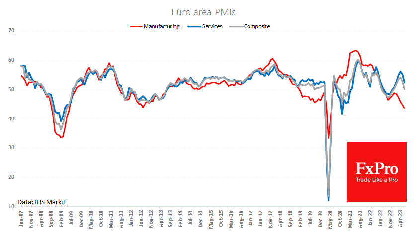 围绕欧元(UR)和其他风险相关资产的抛售压力仍然很大,这次它迫使欧元/美元进一步投降并跌破1.0900的关键支撑位。 自周四在1.1000心理关口上方创下新的月度峰值以来,欧元/美元迄今已经下跌了逾1美分。 事实上,由于法国和德国6月份制造业和服务业I初值数据不佳,欧洲货币的跌势加剧,这反过来又重燃了该地区