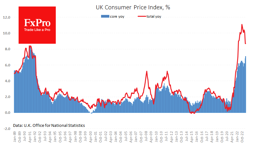 英国消费者通胀并不急于回落。5月份的最新预估显示价格上涨了0.7%,比此前三个月的涨幅甚至更大。总体而言,2月至5月,消费者物价指数(CI)上涨4.2%,而5月份同比价格涨幅为8.7%。每月价格涨幅并未给通胀步入正轨带来任何希望。 Fxro高级分析师AlxKutikvich指出:核心通胀继续加速,同比达到7.1%,为1992