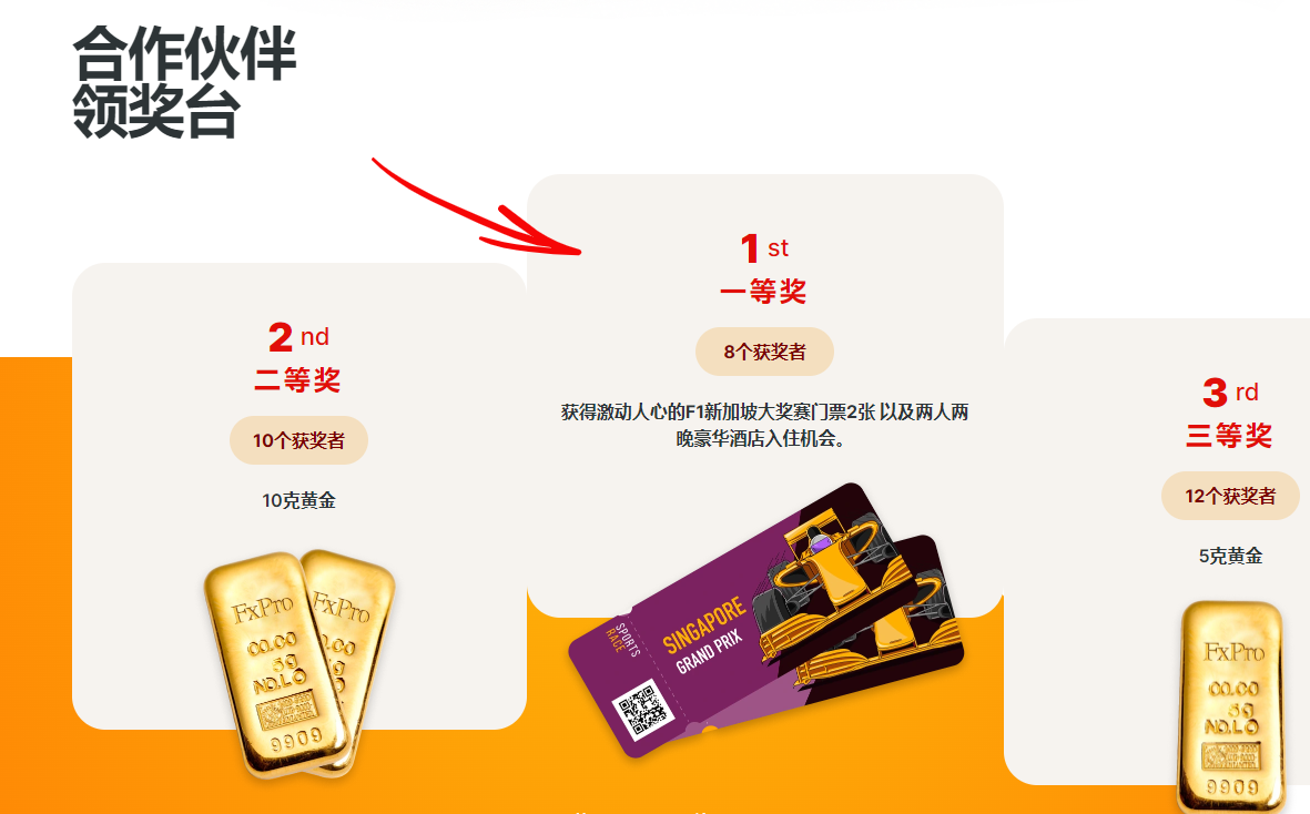 Fxro助您通往成功之路 参与Fxro代理回馈活动 有机会赢取F1门票与各种奖品 活动时间:2023年6月5日至7月28日 在寻找激动人心的机会? 无论您是现有代理还是新注册的代理,均有机会参与Fxro独家的 代理商回馈活动,赢取激动人心的F1赛车体验。 此外,Fxro还为其他