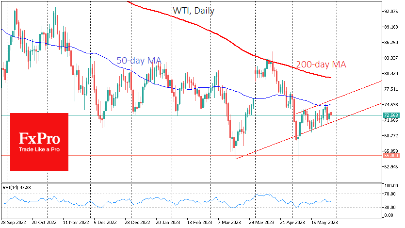 WTI原油保持在5月初形成的上升趋势内。但是,做好迎接来再次测试71美元的趋势支撑位,并可能进一步下跌的可能。 Fxro高级分析师AlxKutikvich指出:有迹象表明,尽管金融环境趋紧,但经济仍表现出韧性,经济表现继续优于预期,这影响了当前的油价上涨趋势。 在原油买家方面,存在诸多因素,从对风险资产