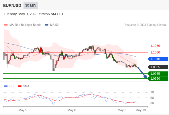 欧元/美元面临越来越大的抛售压力,并在周二跌破关键支撑位1.1000关口。 该货币对无法挑战/突破迄今为止的2023年高点1.1095(4月26日),有可能在短期内引发更深度的修正性下跌,近期目标是月低点1.0941(5月2日)和周低点1.0909(4月17日)。 从长期来看,只要位于日内在1.0440的200日均线上方,建设性的观点仍保
