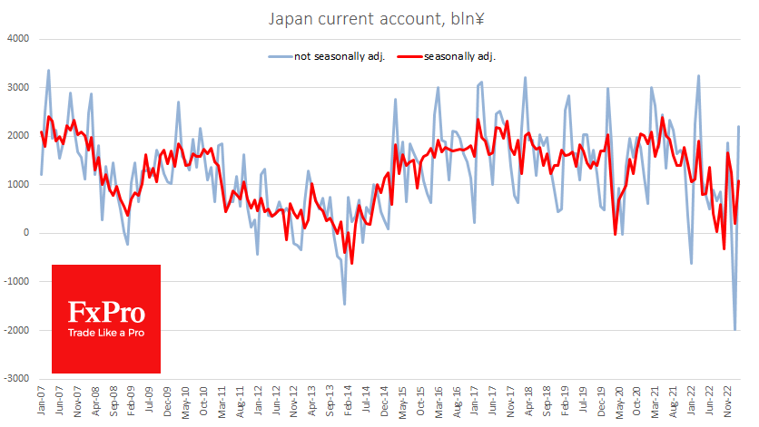 在经历了去年的冲击之后,日本的经济指标正在慢慢恢复正常。但条件仍然不适合日本央行加息。这对日元来说不是好消息。过去一年大幅上升的利率差为套利交易创造了条件。积极运用利率差策略的唯一障碍是央行行长换届带来的货币政策的不确定性。 Fxro高级分析师AlxKutikvich指出:随着2月份贸易赤字降至11个月来的