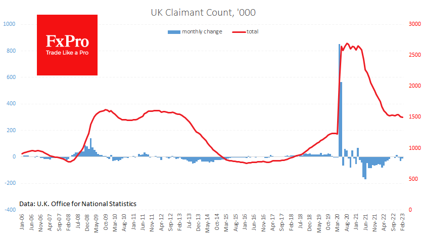 英国2月份首次申请失业救济人数减少了11.2万人,而分析师的平均预测是增加12.5万人。在经历了一段持续的稳定时期后,申请失业救济的人数在过去的三个月里减少了近5万人,这是一个明确的信号,表明经济比之前认为的要更加稳固。 Fxro高级分析师AlxKutikvich指出:截至1月份的三个月,失业率保持在3.7%,接近