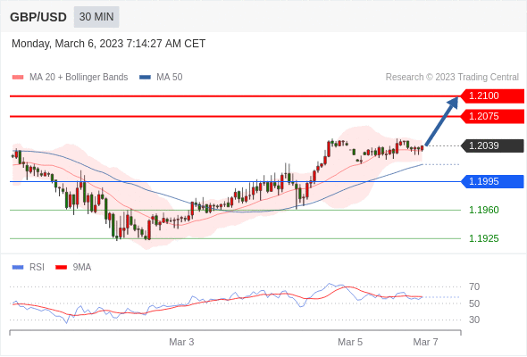 亚市早盘,欧元/美元正积聚动能收复阻力位整数关1.0700。由于市场对风险资产的风险偏好有所改善,欧元上涨。美联储主席鲍威尔发表证词之前,美元正试图企稳。美联储主席鲍威尔可能会考虑在支持提高利率之前采劝观望”的方式,因为市场认为2月份消费者支出维持的弹性可能是“一次性的”。 标普500指数周一收盘小幅上涨