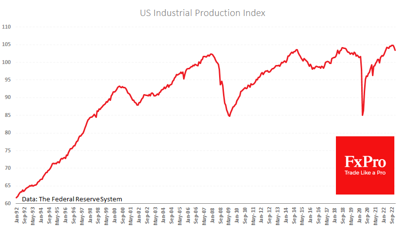 周三公布的美国统计数据显示,经济活动将在年底下降,但美联储仍保持其鹰派言论。这种有毒的混合导致市场在收盘时走低,导致道琼斯指数下跌1.8%,纳斯达克100指数下跌1.2%。VIX恐惧指数回到20以上,这表明股市在过去一年中不止一次出现抛售潮。 Fxro高级分析师Alx?Kutikvich指出:12月份,零售额下降1.1%,