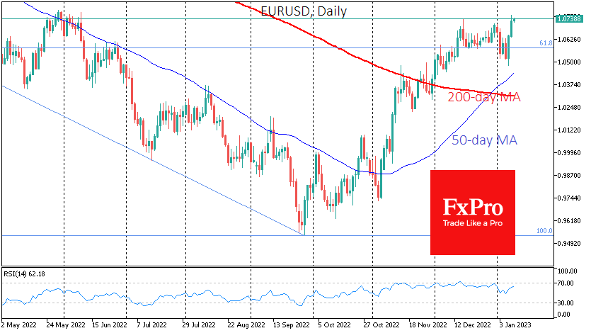 欧元/美元似乎在1.0760附近遇到了一些阻力。 进一步上行可能会重新测试2022年6月的高点。 周二,欧元/美元在周一的月度峰值1.0760附近停滞。 如果多头继续控制走势,该货币对应该会突破1月的高点1.0760(1月9日),然后尝试看向2022年6月的高点1.0773(6月27日),然后是2022年5月的高点1.0786(5月30日)。 与此