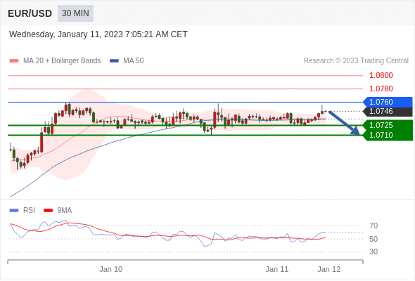 欧元/美元在波动的市场中窄幅波动。 尽管收益率走高,但美元的走势也不稳定。 市场的注意力转向周四发布的美国消费者物价指数(CI)。 周二到目前为止,欧元/美元保持在1.0740附近的数月高点区域内交易。 欧元/美元在1.0700上方保持支撑 全球市场普遍缺乏波动,促使欧元/美元在1.0700上方涨跌不一,而多头