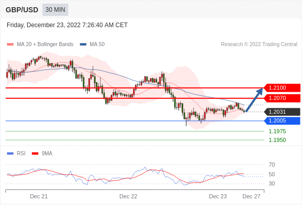 英镑/美元维持在1.2000支撑位上方,目前交投于1.2017-1.2044区间。美国经济数据积极美元获得支撑,这些数据可能使美联储鹰派政策持续更长时间。 美国经济数据提振美元 首先,美国上周初请失业金人数低于预期。美国劳工部表示,截至12月17日当周,经季调首次申请失业救济人数增加0.2万人,至21.6万人。市场预期是22