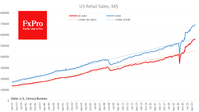 根据美国人口普查局的最新估计,美国10月份零售额增长1.3%。美国人的购买量每年增长8.4%,尽管通胀调整(上个月每年增长7.7%)破坏了销售繁荣的印象。 Fxro高级分析师Alx?Kutikvich指出: 另一方面,美联储正在进行过去40年来最重要的努力来冷却消费者需求,因此目前的结果很难令人满意。 强劲的零售