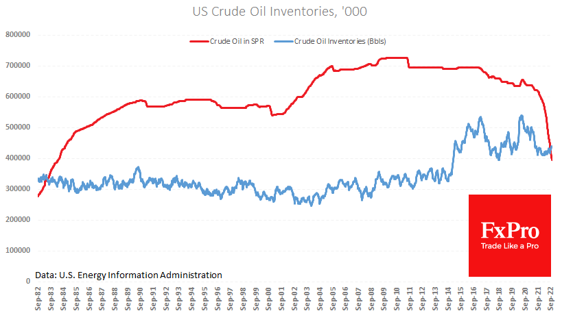 自周二以来,油价下跌7.5%,WTI原油价格反弹至84美元。周三,在每周库存报告公布后,压力加剧。在一个多月内第二次未能突破93美元后,油价似乎已经完成了从6月至9月的下跌中的修正,向75美元逼近。 Fxro高级分析师Alx?Kutikvich指出:每周数据显示,商业库存增加390万桶,扭转了一周前的下降趋势。11月初,库存