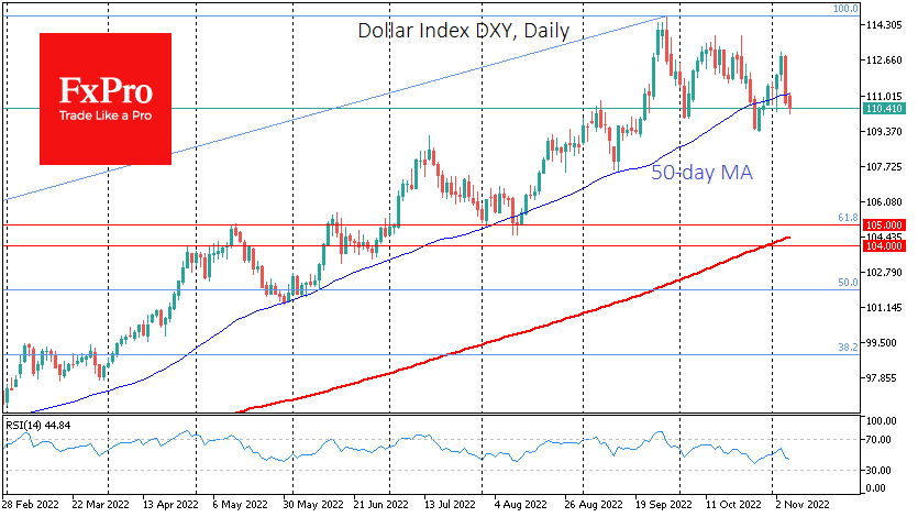 周五,美元指数下跌超过1.9%,这是过去20年中十个最显著的日跌幅之一。鉴于美元的压力一直持续到周五,并在周一继续存在,美元多头显然屈服,无法推动美元升值。 Fxro高级分析师Alx?Kutikvich指出:我们上一次看到美元指数出现更大的日内波动是在2015年,以及2008-2009年的所有其他时间。更引人注目的是,