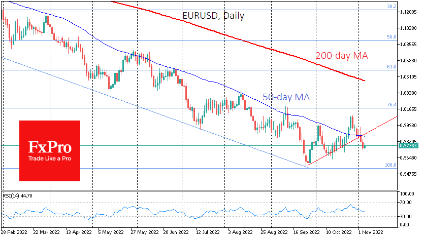 市场对鲍威尔周三言论的反应打破了欧元兑美元自9月下旬以来一个月以来形成的良好技术前景。在这种环境下,美元能否延续9月底创下的高点的问题变得更加重要。 Fxro高级分析师Alx?Kutikvich指出:自2021年5月以来,欧元兑美元下跌超过22%,从9月下旬的0.9530攀升至一个月后的1.0080。目前的利率高于之前的局部高点