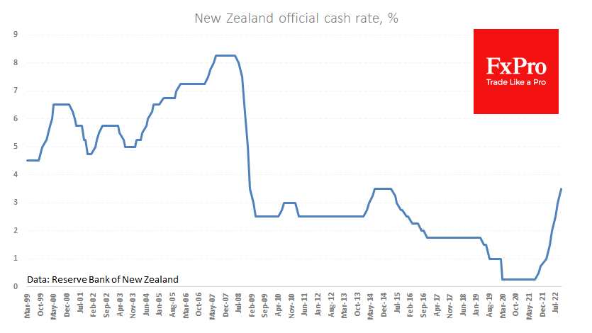 与昨日的澳洲联储不同,新西兰央行通过将关键利率上调50个基点至3.5%达到了预期。自一年前开始加息以来,新西兰央行在4月份将利率从25基点增至50基点,使其达到2014-15年的周期性高点。 Fxro高级分析师Alx?Kutikvich指出: 央行将过高的核心通胀率(不包括食品和能源)和劳动力短缺作为进一步加息的原因
