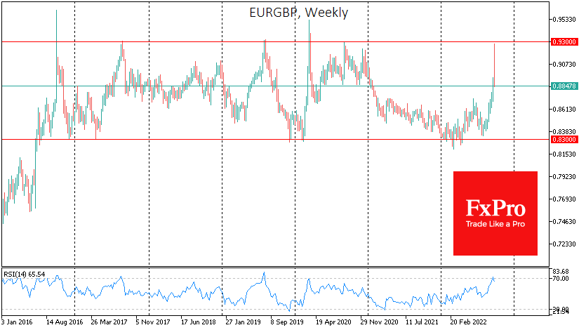 欧元兑美元回吐了周三升至0.9750的部分涨幅。 如果空头重新获得主动权,该货币对可能会重新触及今年以来的低点。 欧元兑美元的看涨尝试再次在0.9750附近的周高位停滞,引发了随后的明显抛售。 到目前为止,欧元进一步走软的可能性仍然很大,近期目标是2022年的低点0.9535(9月28日)。如果进一步下跌,可能会挑战