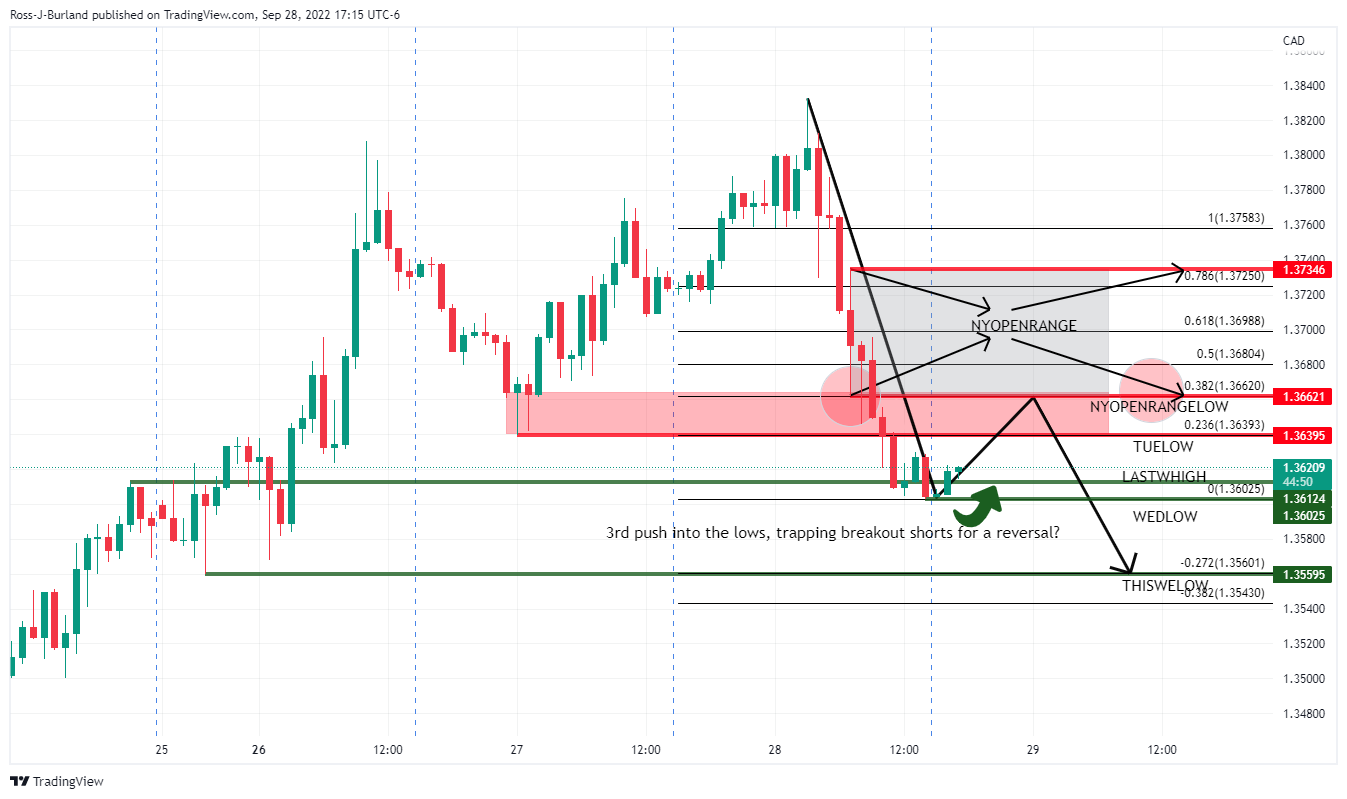 下图列出美国时段开盘时美元/加元的关键水平,未来数个交易日美元/加元可能会再次测试该价格,该区间的低点在1.3660附近与38.2%斐波位汇合。 美元/加元小时图 在此过程中,美元/加元处在震荡当中,寻求突破看跌趋势,汇价需要突破上行处在周二低点1.3640上方。如果美元/加元维持在该水平上方,汇价将进一步突