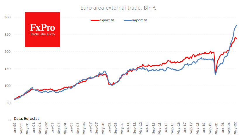 根据欧盟统计局的一份新出版物,欧元区7月份经季节调整的外贸逆差扩大至400亿英镑。自去年10月以来,该地区发现自己扮演了一个陌生的净进口国角色。这是一个明显的逆转,在大约十年的出口大大超过进口之后。从1999年到2012年,即使在2008-2009年的危机时期,出口和进口也保持在一起。 Fxro高级分析师Alx?Kutikvi