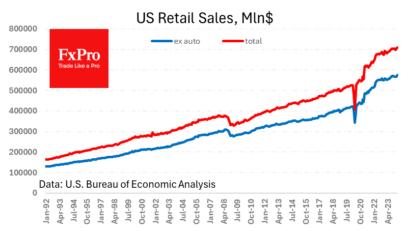 美国3月份零售销售额继2月份增长0.9%(从2月份的0.6%修正)之后,又增长了0.7%。预计预计将增长0.4%。如此强劲的数据扭转了上个月的模式,当时2月份的增长并没有超过1月份的下滑。截至去年,零售销售额同比增长了4.1%,超过了3.5%的年同比通胀率。 Fxro高级分析师AlxKutikvich指出:不包括汽车的零售额增长了1.1