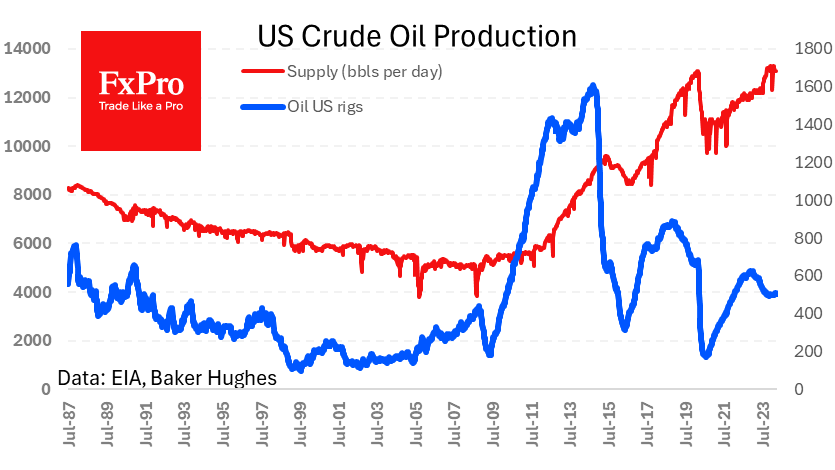 周一油价回落,因为伊朗对以色列的报复行动得到了很好的沟通,而且造成的损失很小,市场松了一口气,投资者希望任何升级都将得到控制。周末,伊朗发动了由无人机和导弹组成的袭击,其中超过99%的袭击被防御系统化解。与此同时,伊朗表示不寻求进一步升级,甚至美国也已经与伊朗进行了接触,这意味着外交机制正在努力避免