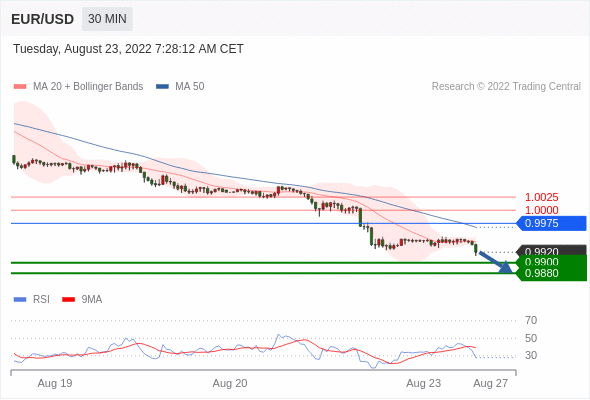 欧元兑美元在平价区间下方扩大下行。 如果进一步回调,则可能会重新测试2022年低点0.9950。 欧元兑美元跌破平价水平,在本周初触及6周以来的新低。 目前,进一步的下跌似乎还在酝酿之中。在此背景下,如果有效跌破平价水平,该货币对可能会看向2022年低点0.9952(7月14日)。 从长期来看,只要该货币对在200日
