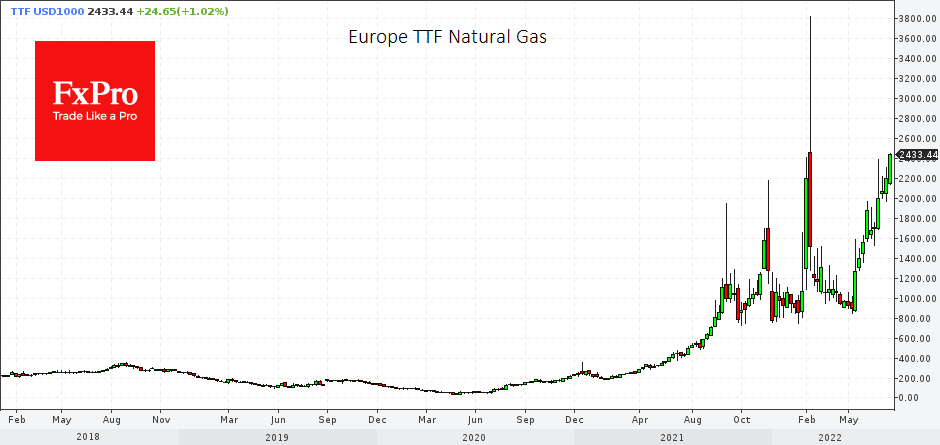 周一,石油遭受巨大压力,但天然气价格继续上涨。造成这种反差的原因是,俄罗斯对欧洲市场的天然气供应不足,以及对伊朗石油的猜测增多——伊朗石油日产量可能很快增加逾100万桶。尽管如此,宏观经济现在站在了看空能源的一方,只有地缘政治暂时为看多的人提供了支持。 Fxro高级分析师Alx?Kutikvich指出: 纽