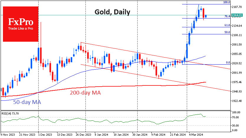 黄金价格周二下跌超过1%,这是在连续9天上涨后的首次日跌幅,其中6天创下历史新高。 Fxro高级分析师AlxKutikvich指出:周一和周二的整合迹象已经很明显,随着美国通胀数据的公布,市场加速了温和的下降。尽管这一消息引发的风险资产抛售非常短暂,但黄金的抛售更为持久,但并没有超出短期固定期。 许多因素表