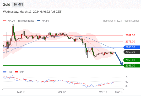 周二欧洲时段,金价(XAU/UD)小幅下跌。投资者在等待格林尼治标准时间12:30公布的美国2月份消费者物价指数(CI)数据,以获得新的指引。 在通胀数据公布前,贵金属表现出一定的压力。强劲的CI数据可能导致市场对美联储(Fd)在6月政策会议上降息的预期下降。这将增加持有黄金等非收益资产投资的机会成本。同时,